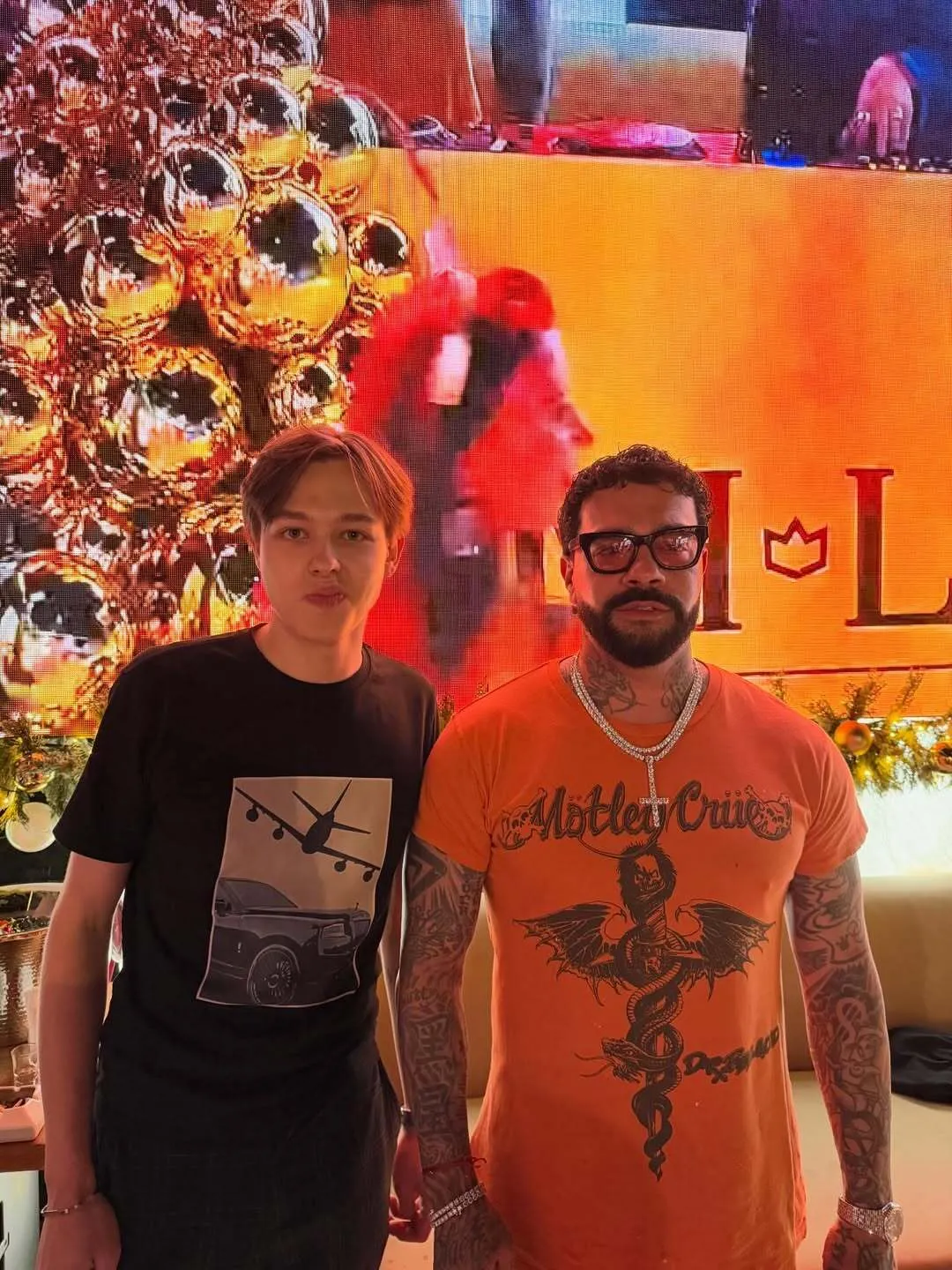 У мережі з’явилися фото та відео з новорічної вечірки в Дубаї, на яких Андрій Драган позує з Тіматі. Фон прикрашає прапор Росії, що викликало хвилю обурення серед українців.